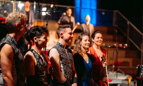 Apokalypse ist Hillers Gegenstück zu seiner Komposition Schöpfung aus dem Jahr 2016. Nun erweitert der Komponist die Besetzung und schafft ein Klangmosaik aus Männerquartett und Kontrabass, Violine, Harfe, Celesta und Schlagzeug mit Koloratursopran, Klarinette und Flügel. So spannt er den musikalischen Bogen vom Anfang der Welt bis zu ihrem Ende. Seine Musik erzählt von der Verantwortung des Menschen für die Schöpfung, von dem, was man nicht wissen, aber erhoffen kann, von dem, was man nicht sagen, aber hören kann: Jenseits des Endes ist Neues. Das Geheimnis des Lebens bleibt, die Vokalisen der Engelsstimme schweben im Raum.
