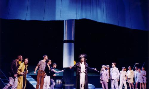 "Peter Pan zu sehen ist eine Altersfrage." Kurz, bevor es für sie zu spät ist, lässt sich Wendy Darling mit ihren zwei Brüdern ins Land Nirgendwo entführen. August Everding gab den Auftrag zu dieser "musikalischen Abenteuerreise" nach Barries berühmtem Jugendroman.