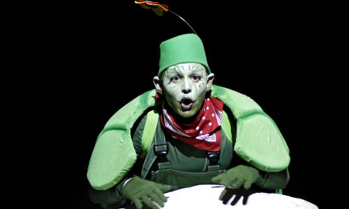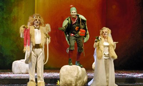 Der Erzähler - Tranquilla Trampeltreu, die beharrliche Schildkröte, die Heuschrecke, die Schnecke, der erste Rabe, der zweite Rabe, das Äffchen · Sprechrollen - die Eidechse · Tenor, mit einer Wäscheklammer auf der Nase -- König Leo · stumme Rolle - seine Braut · stumme Rolle